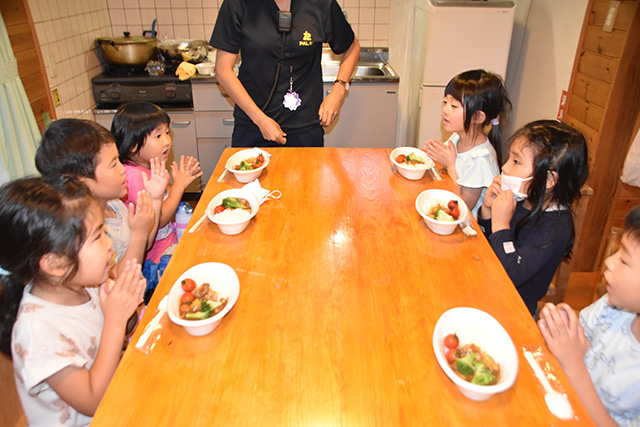 クラフト製作が終わり、待ちにまった夕食!キャンプの定番メニューといえばもちろんカレー!