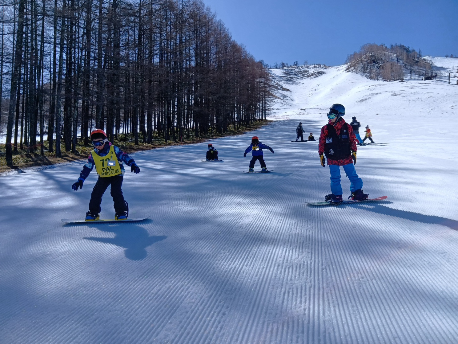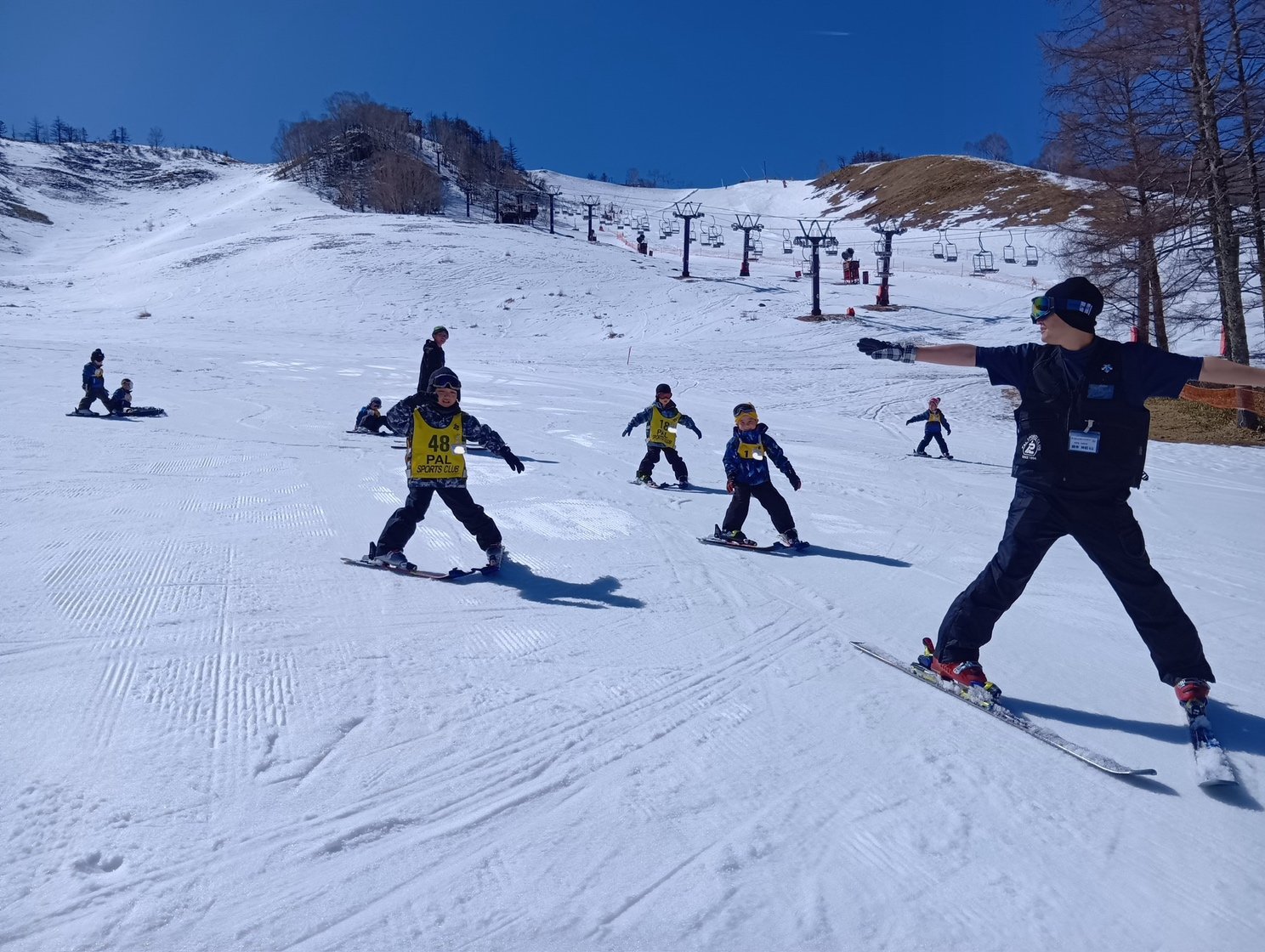 緩斜面でのレッスン!中には1日でリフトに6回も乗る班もあり、子ども達の成長のスピードに驚かされました!!